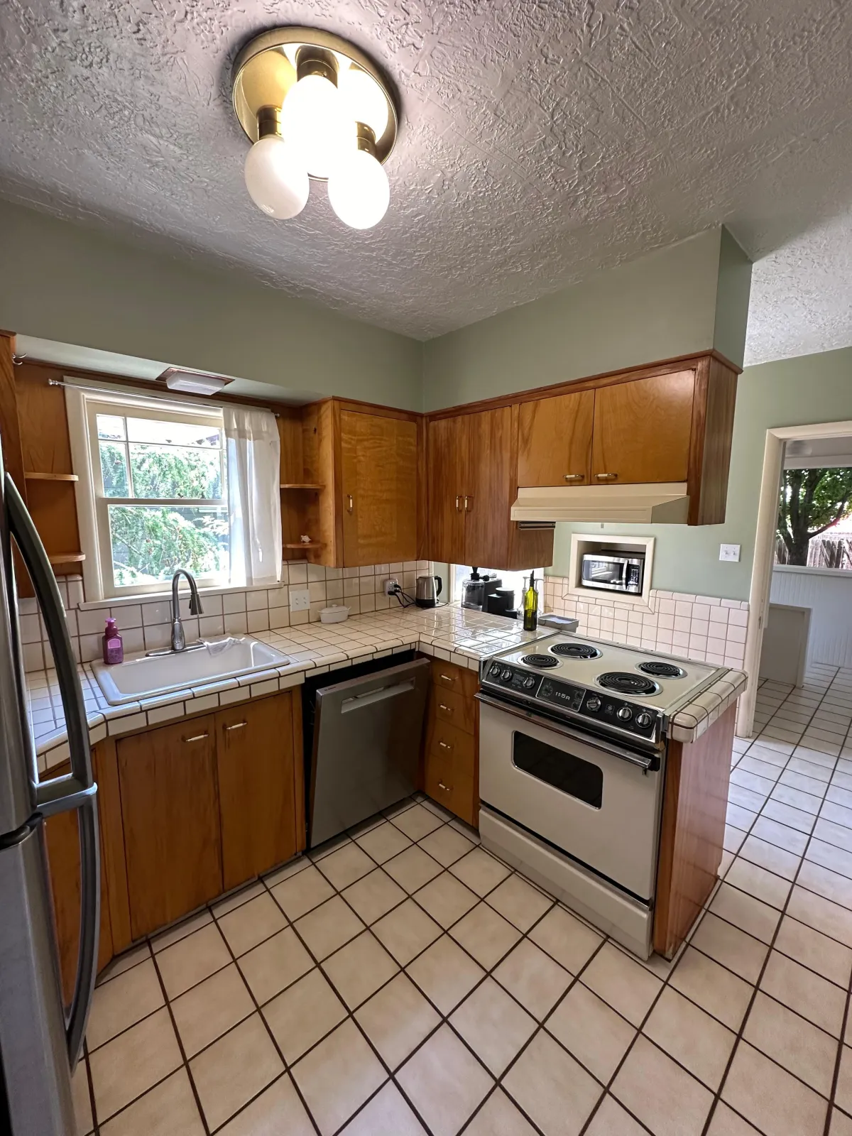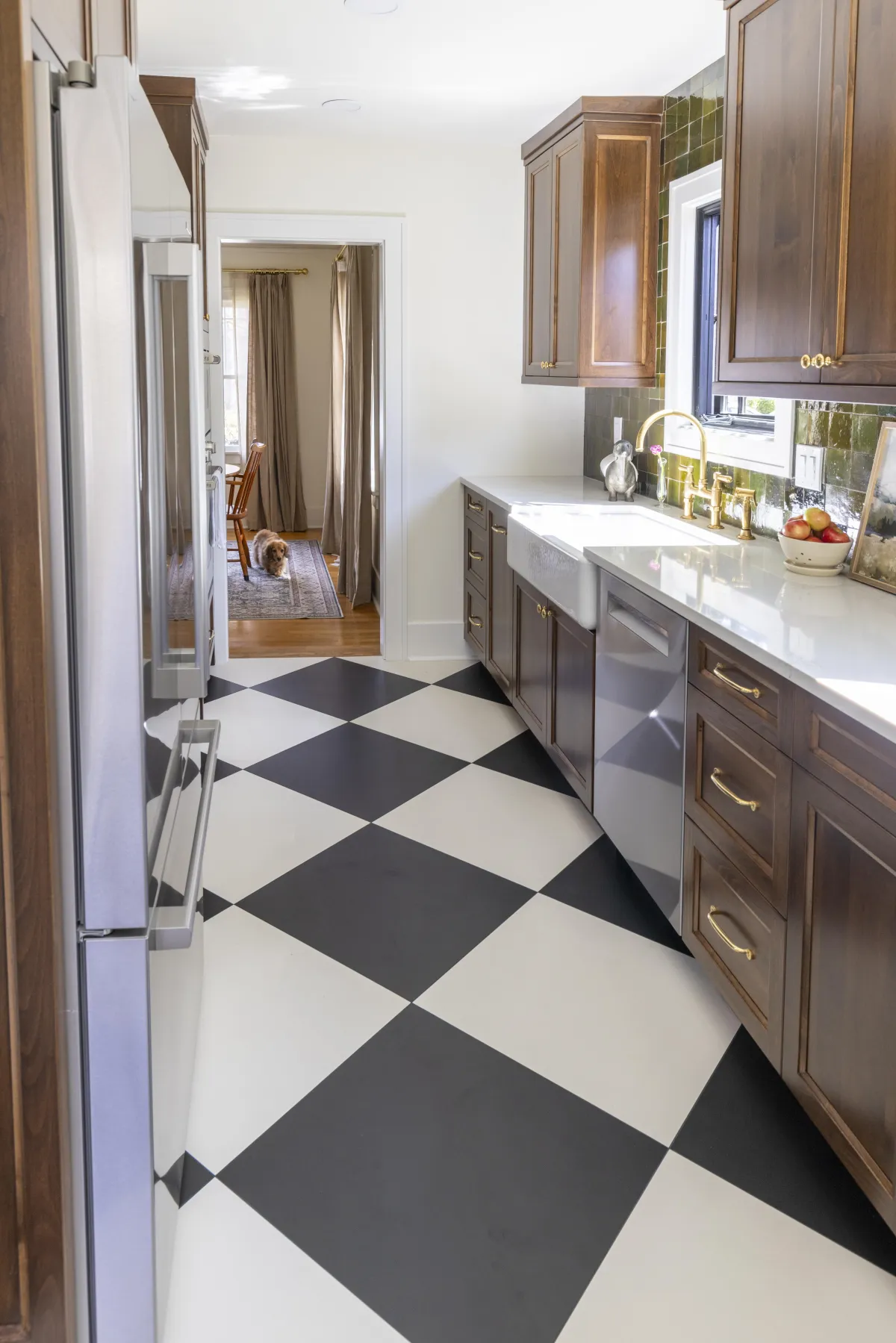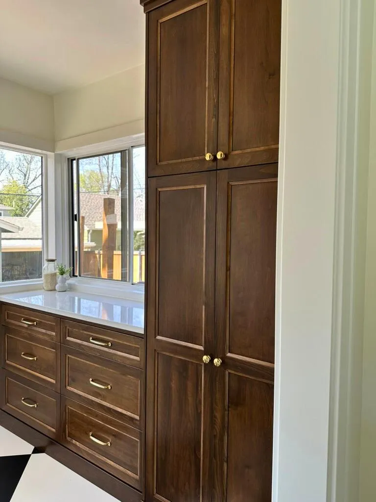 The green Zellige tile brought a pop of deep color that complimented the custom cabinet stain perfectly. This tile is a thicker style of tile, so we ensured the window casing would sit deeper to accommodate the additional depth.